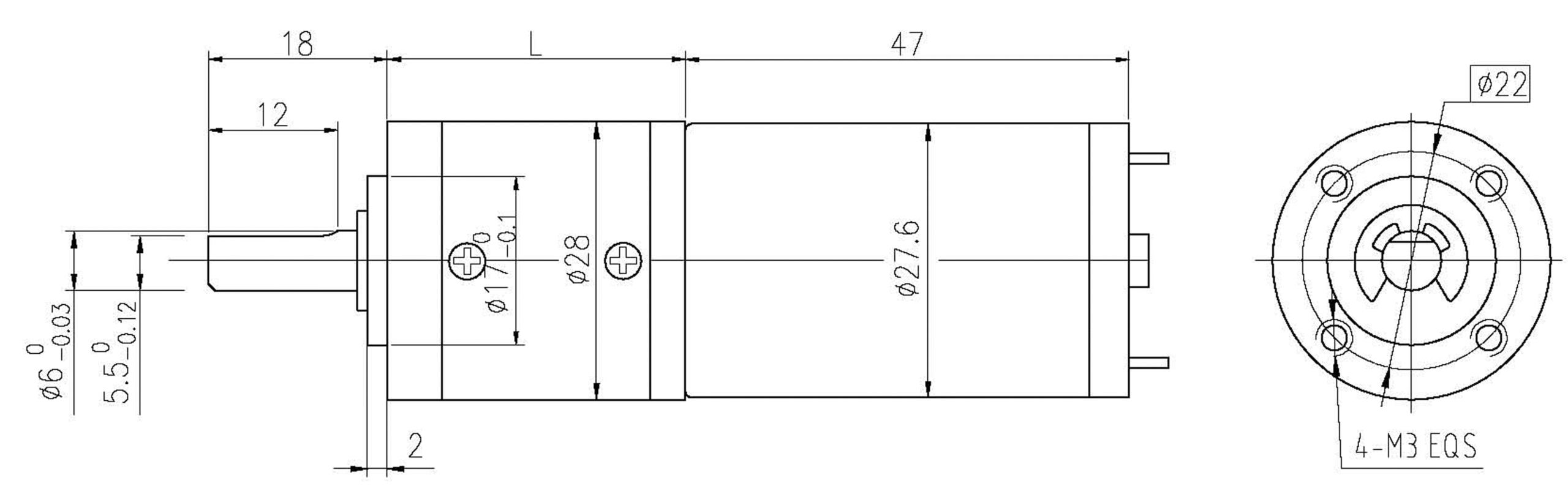 28mm OD Planetary Gearbox, Permissible Load Range: 0.2N.m~2.0N.m